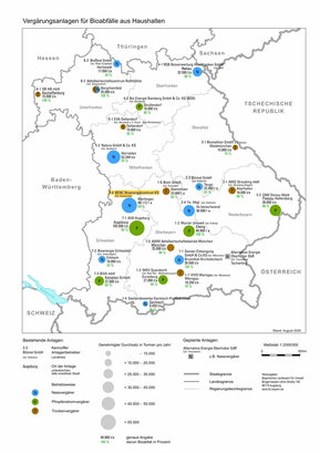 Auf der Karte der Vergärungsanlagen für Bioabfälle aus Haushalten können Sie ablesen, dass wir eine genehmigte Menge von 89.000 Tonnen verarbeiten können und sind somit einer der größten privaten Abfallverwerter in ganz Bayern.